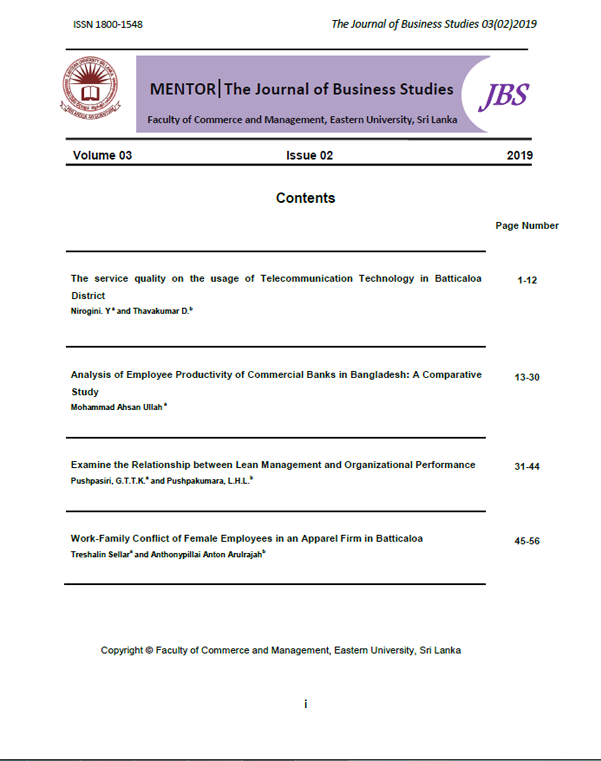 Work-Family Conflict of Female Employees in an Apparel Firm in Batticaloa